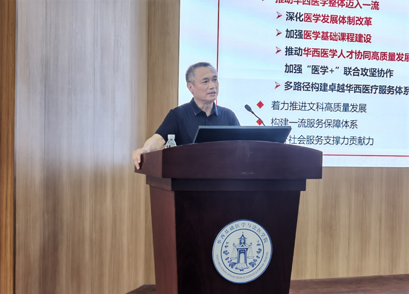 首先,院长李昌龙传达学校2024年下半年新学期工作布置会精神,强调新学期要结合学院实际,继续推进“1+5”制度文件贯彻落实,用好改革法宝,推动学院高质量发展。随后,他总结了学院2024年上半年的工作,表示学院在师资队伍质量提升、高水平学科平台建设、科学研究水平提升、教学高质量建设、创新人才培养改革、加强校外合作等方面取得显著成效。他指出,2024年下半年,学院要贯彻落实学校重要会议精神和工作部署,重点推进以下工作:一要积极、主动推进医学整体率先迈入世界一流实施方案;二要全力引进国内外高水平人才,建强师资队伍;三要围绕四大领域推进科研团队建设;四要建立年度青年教师成长汇报、交流机制,促进青年人才早日成才;五要以人才培养高质量发展为核心,推进教育教学改革;六要做细新生入学教育,抓实学风建设;七要提升空间使用效能,优化办学环境;八要加快推进实验动物中心建设,提升服务质效。