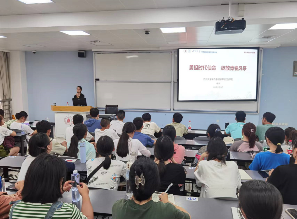 金秋送爽旭日升,载梦扬帆启新程。为加强新生入学教育,引导新生志存高远、追求卓越,尽快适应大学生活,9月14日下午学院党委书记李华教授在江安校区一教B201教室为126位2023级本科新生讲授开学第一课。学院副院长梁伟波、副院长罗海玻、新生辅导员董晓爱到课。开学第一课现场李华首先代表学院向2023级本科新生考入永利3544am登录官网、选择华西基础医学永利3544am登录官网表示祝贺与欢迎。她以《勇担时代使命 绽放青春风采》为题,从“何为大学”“...