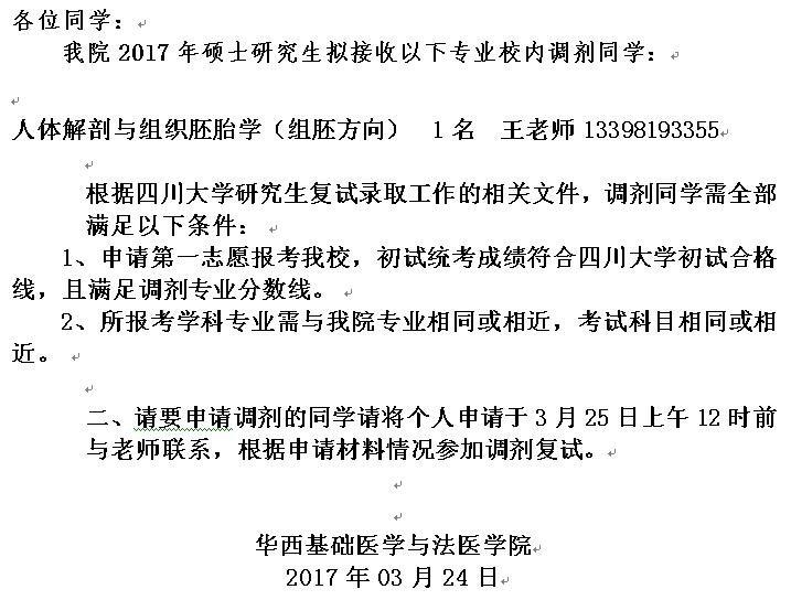 亲爱的同学: 欢迎报考永利3544am登录官网华西基础医学永利3544am登录官网!根据《永利3544am登录官网研究生复试录取工作实施办法》(川大研【2012】94号)有关规定,经学院研究生招生工作小组研究,2017年永利官网硕士研究生招生复试安排如下: 一、 ...